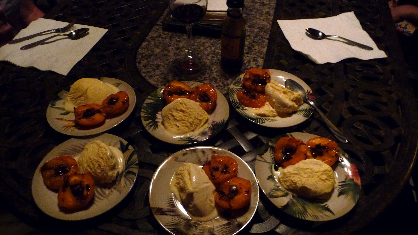 Recently, we had a delicious dinner with Chantal's dad and stepmom; featuring fabulous Mediterranian chicken and corn on the cob and bean salad and grilled veggies...a summer's bounty on our plates. Plus, I finally got an opportunity to grill stone fruits for our dessert. We had picked up some beautiful apricots at the Bandon farmer's market and I made Apricots with chocolate and raspberry balsamic drizzle. (Click for recipe)